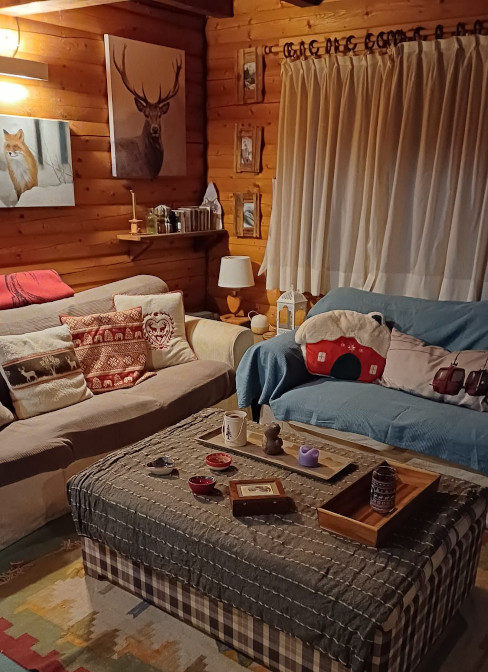 Lo chalet è un accogliente trilocale in legno norvegese. L'ingresso apre sul soggiorno con cucinino separato. Per i vostri momenti di relax all'aperto potrete godere di un ampio terrazzo panoramico. La zona notte è pensata per ospitare comodamente famiglie o gruppi con una camera con letto matrimoniale e una seconda camera versatile con due letti a castello (4 posti letto totali nella stanza).